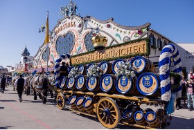 ビールテントオーナーのパレード(Einzug der Wiesnwirte) 14のビールテントのオーナーたちが、豪華な馬車でパレードを行いながら会場に向かいます。
